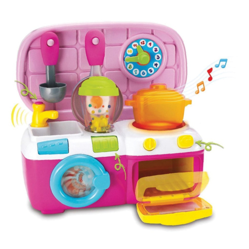 В наборі: міні-кухня, сковорода, ополоник, міксер, каструля. Працює від двох батарейок типу АА 1.5 V (демобатарейки є в комплекті). Рекомендовано для дітей віком від 18 місяців. Розмір упаковки: 30х32х16 см.
